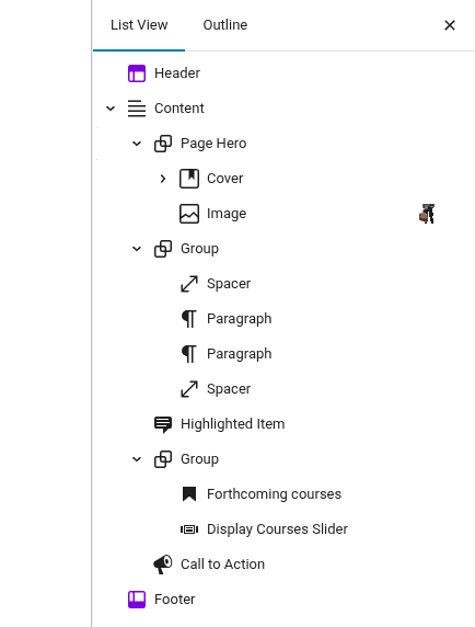 - Custom blocks ~ purpose-built pieces for functionality you can’t achieve with core blocks