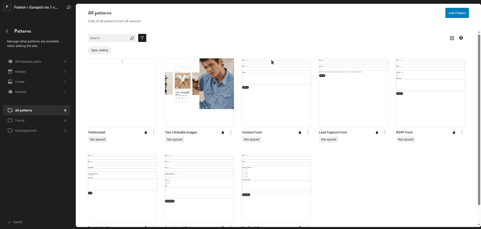 - You can create both synced and non synced patterns in the Full Site Editor.