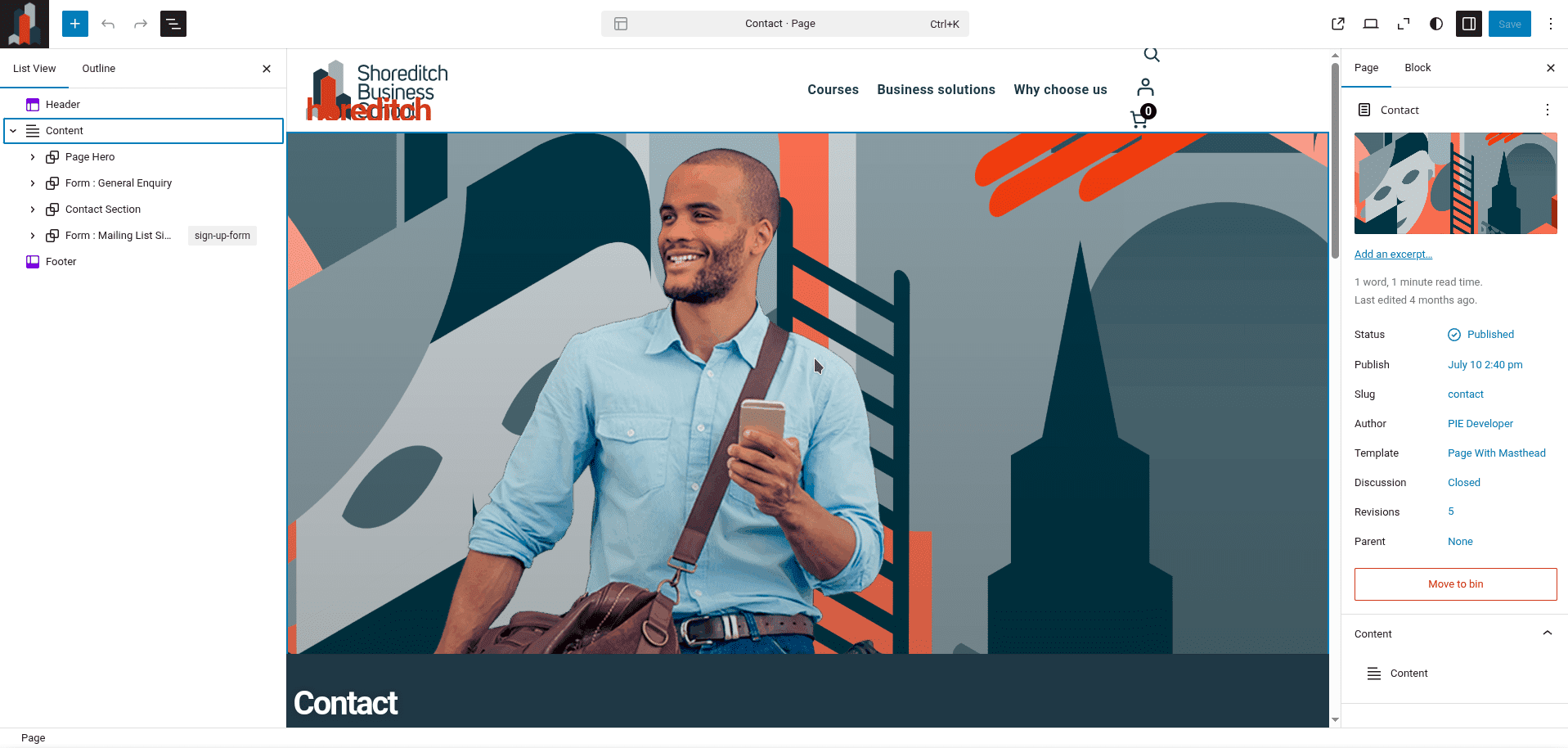 - Pages don’t need to be created in the codebase of your theme; if there is at least one template containing the Content block, any page created in the block editor and published will be displayed on your browser.